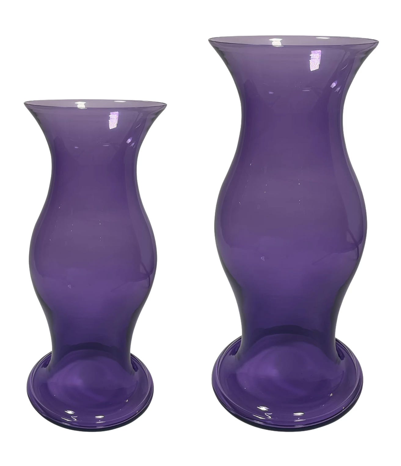Shining bright, they are a happy reminder of sunnier days ahead. We’re craving little jolts of color at home, like these hand-blown AMETHYST GLASS HURRICANES from KRB, a special little design boutique in Manhattan. We’re also loving these affordable Mid-Century antique versions from the Morgantown Glass Company in West Virginia, including these scalloped sets on Chairish and eBay, this three-piece set, these hurricane bases (great for votives or pillar candles) and this vase, which works beautifully with a candle or two bunches of Purple Dream tulips.