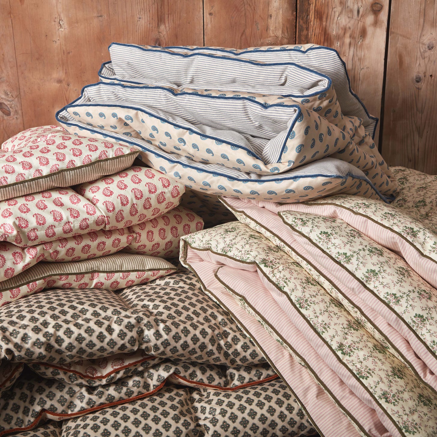Light-as-air, it is the vision of comfort. A HOWE EIDERDOWN is the perfect layering piece as we look toward spring. Originally a Victorian invention, eiderdown quilts (800 sailed on the Titanic!) were designed to be layered on a bed over a top sheet and blankets. Hand-stitched in the English countryside, Howe’s is filled with duck feathers and down, is available in a variety of the London-based company’s beautiful textiles including ticking stripes and paisleys (and bespoke versions), and is finished with velvet piping. Small and large sizes are available.